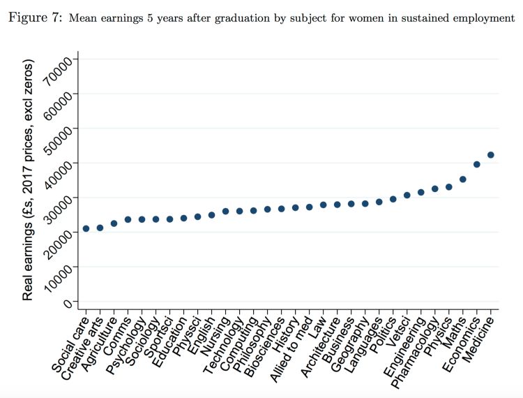 • We know there is wide variation in the earnings between graduates from different degrees. Medicine, maths and economics graduates all typically earn at least 30% more than the