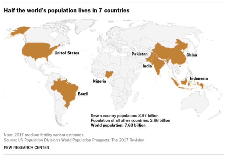 Chosen excerpts by Job Market Monitor. Read the whole story at Which 7 countries hold half the world’s population? | Pew Research Center