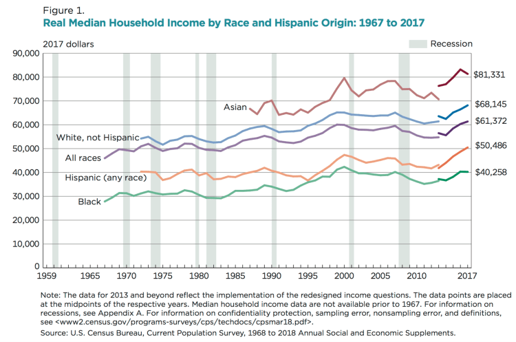 The U.S. Census Bureau collects data and publishes estimates on income and poverty in order to evaluate national economic trends as well as to understand their impact on the well-being of households, families, and individu-als. This report presents data on income and poverty in the United States based on information collected in the 2018 and earlier Current Population Survey (CPS) Annual Social and Economic Supplements (ASEC) conducted by the Census Bureau.