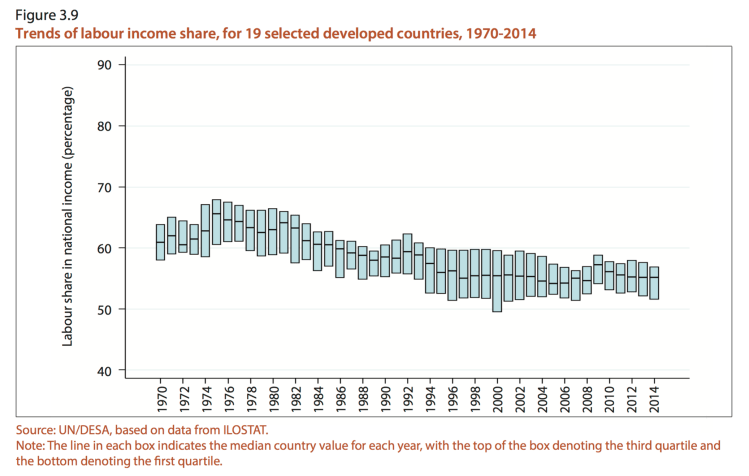 In assessing the impact of new technologies, it is important to understand how technology interacts with other important trends. Changes in market structure —leading to increased monopolistic rents and high profits made by relatively few firms— are a key factor for explaining rising inequality in many countries. However, profit shares are not only rising in technology markets characterized by ‘superstar firms’ but also in other sectors, which points to the importance of regulatory policies and lobbying activities. Global value chains (GVCs) are driven both by technological advances and by changes in trade and investment policies. They have spurred trade and employment in several developing countries, though reshoring could limit this in the future.