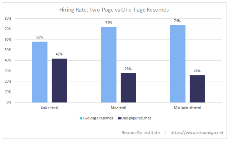 Recruiters surprisingly prefer two-page resumes over one-page resumes regardless of the job level