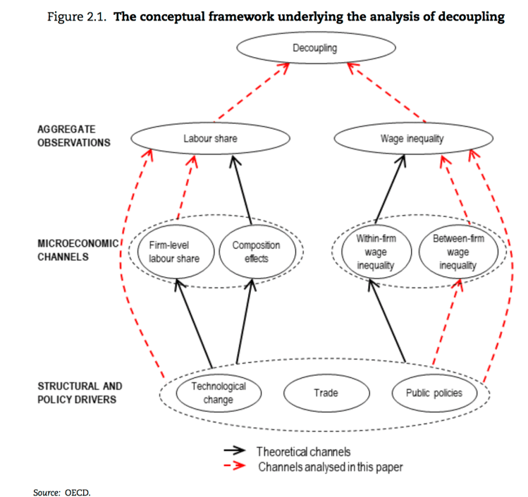 This chapter takes stock of recent OECD research on the drivers of wage-productivity decoupling and discusses implications for public policies. The main results can be summarised as follows: