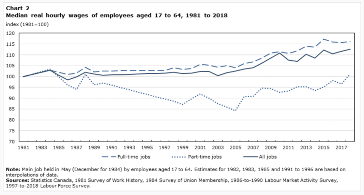 Chosen excerpts by Job Market Monitor. Read the whole story at The Daily — Study: Changing characteristics of Canadian jobs, 1981 to 2018