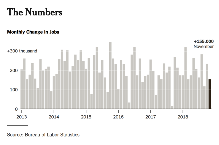 Chosen excerpts by Job Market Monitor. Read the whole story at U.S. Added 155,000 Jobs in November; Unemployment at 3.7% – The New York Times