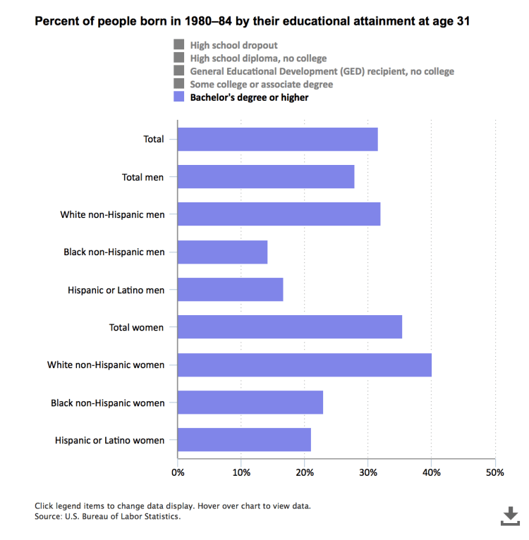 Chosen excerpts by Job Market Monitor. Read the whole story at Women more likely than men to have earned a bachelor’s degree by age 31 : The Economics Daily: U.S. Bureau of Labor Statistics