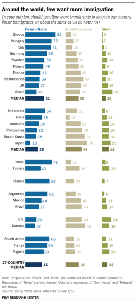 Chosen excerpts by Job Market Monitor. Read the whole story at Many worldwide oppose more migration – into and out of their countries | Pew Research Center