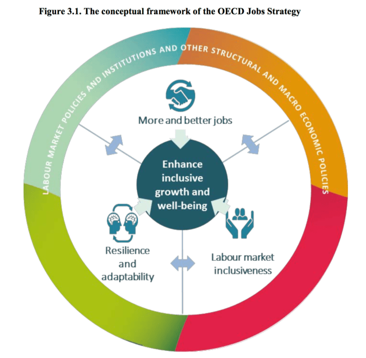 The aim of the new OECD Jobs Strategy is to help countries addressing these challenges. It provides detailed policy recommendations across a broad range of policy areas. The new Jobs Strategy, in particular, goes beyond job quantity and considers job quality and inclusiveness as central policy priorities, while emphasising the importance of resilience and adaptability for good economic and labour market performance in a changing world of work. The key message is that flexibility-enhancing policies in product and labour markets are necessary but not sufficient. Policies and institutions that protect workers, foster inclusiveness and allow workers and firms to make the most of ongoing changes are also needed to promote good and sustainable outcomes.
