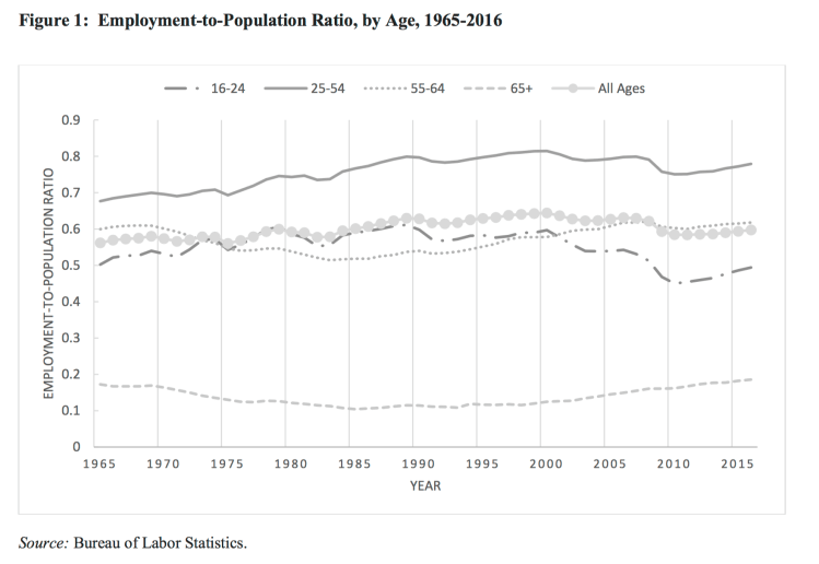Chosen excerpts by Job Market Monitor. Read the whole story at Explaining the Decline in the U.S. Employment-to-Population Ratio: A Review of the Evidence