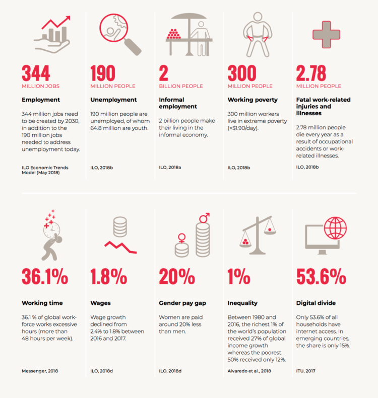 Countless opportunities lie ahead to improve the quality of working lives, expand choice, close the gender gap, reverse the damages wreaked by global inequality, and much more. Yet none of this will happen by itself. Without decisive action we will be heading into a world that widens existing inequalities and uncertainties.