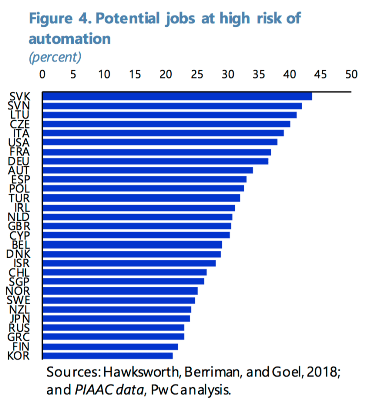 Data on individuals selling products in digital marketplaces and on contingent work in economies. Another analysis by Hawksworth, Berriman and Goel (2018) estimates that automation can potentially replace more than 30 percent of jobs robotization and AI are likely to be smaller than the proportion of jobs that would be technically feasible to replace. Furthermore, the job losses may be offset by new work opportunities created by technology and by output expansions made possible by falling costs and prices. Indeed, an increase in robot density in manufacturing in Japan has been associated with higher productivity and local gains in employment and wages.
