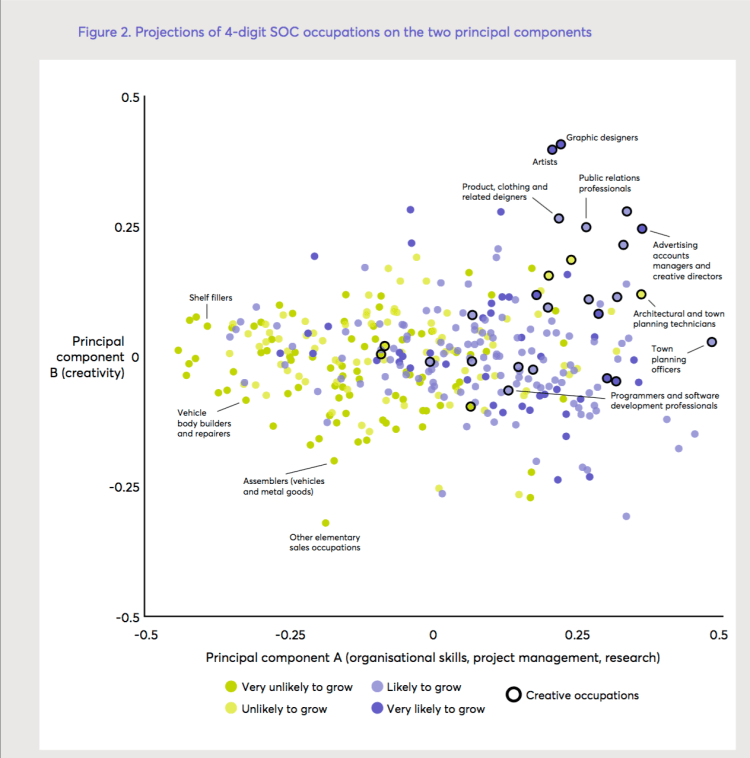 However, this first piece of research from the Creative Industries Policy and Evidence Centre (PEC), written in partnership with Nesta, shows that ‘creativity’ can still tell us important things about those jobs that ask for it.