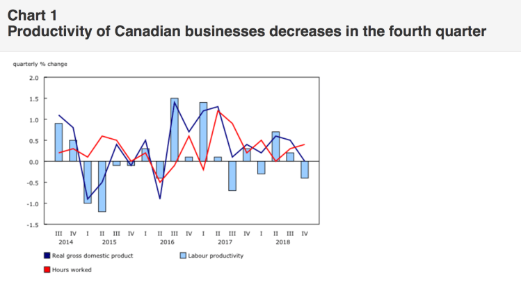 Chosen excerpts by Job Market Monitor. Read the whole story at The Daily — Labour productivity, hourly compensation and unit labour cost, fourth quarter 2018