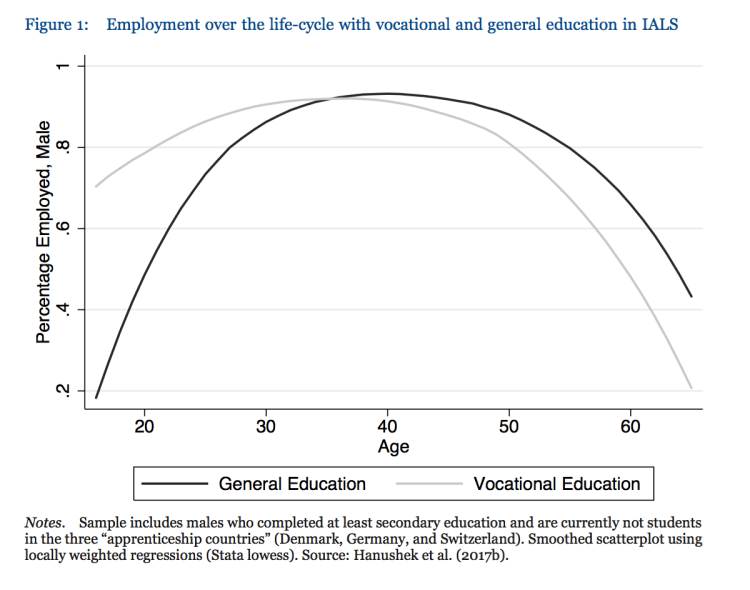 Chosen excerpts by Job Market Monitor. Read the whole story at Facing the life-cycle trade-off between vocational and general education in apprenticeship systems: An economics-of-education perspective | Woessmann | Journal for Educational Research Online / Journal für Bildungsforschung Online