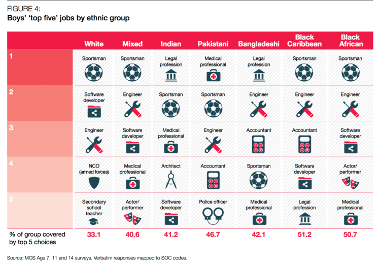 Chosen excerpts by Job Market Monitor. Read the whole story at Occupational aspirations of children from primary school to teenage years across ethnic groups