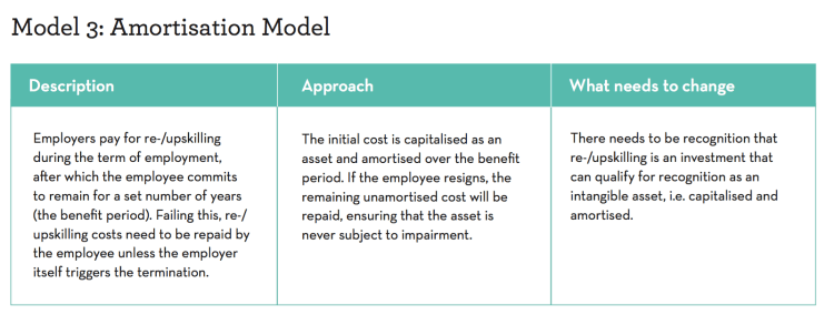 Employers pay for an employee’s re-/upskilling, capitalising it as an asset, a er which he or she is required to stay for a set number of years, re ecting the amortisation period of the asset.