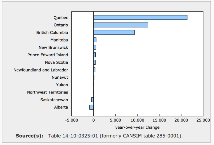 In Quebec, the number of job vacancies grew by 21,400 (+23.0%) compared with the first quarter of 2018. Nearly half of the growth in the number of job vacancies can be attributed to three sectors: health care and social assistance, manufacturing, and accommodation and food services. Compared with one year earlier, the job vacancy rate in the province rose 0.5 percentage points to 3.1%. The unemployment rate in the province over this period was little changed at 5.3%, according to the Labour Force Survey (LFS).