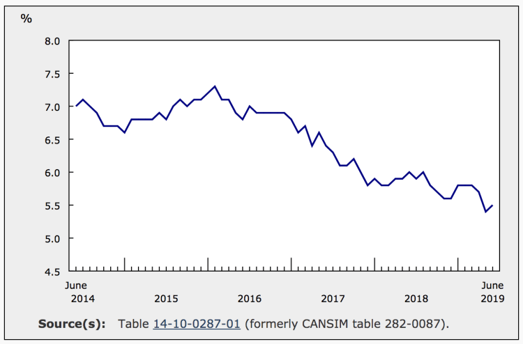 Chosen excerpts by Job Market Monitor. Read the whole story at The Daily — Labour Force Survey, June 2019