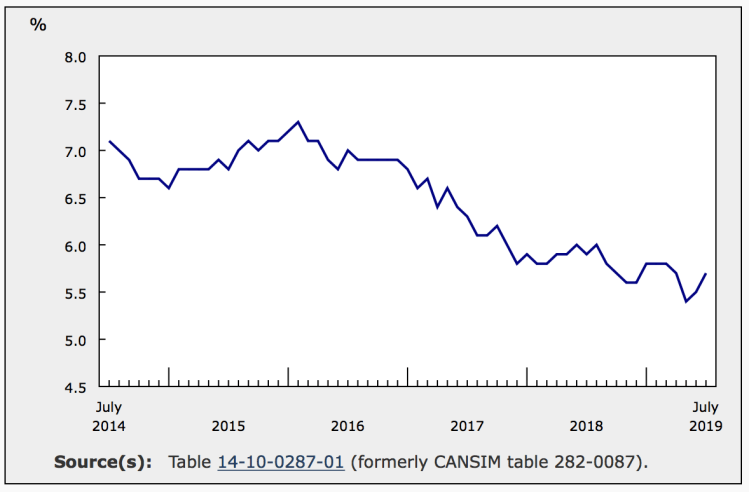 Chosen excerpts by Job Market Monitor. Read the whole story at The Daily — Labour Force Survey, July 2019