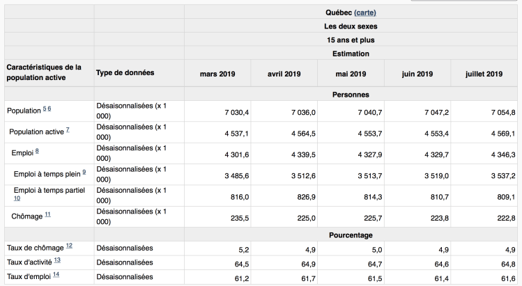 Extraits choisis par le Moniteur de l’emploi . Lire la suite @ Le Quotidien — Enquête sur la population active, juillet 2019