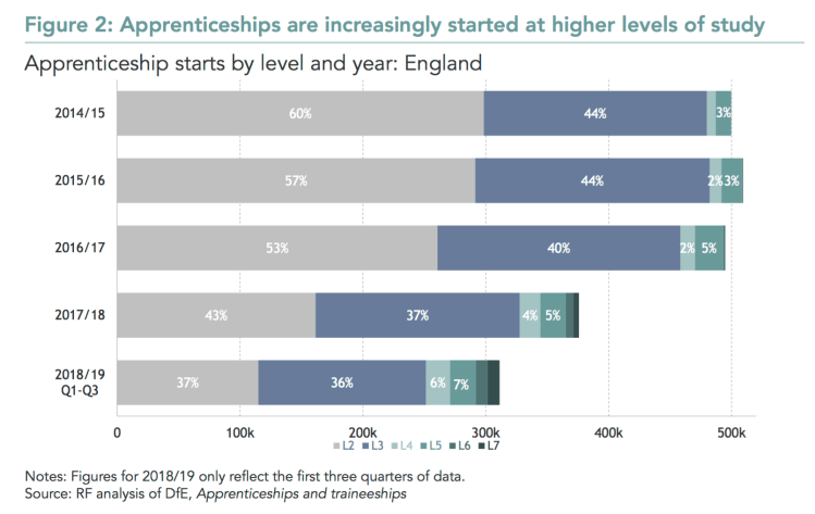 Worryingly, starts at these higher levels are not typically undertaken by those at the beginning of their careers. In fact, a Department for Education survey published in 2017 found that 83 per cent of all higher-level apprentices aged 25 and over said they were employed by the same firm prior to beginning their apprenticeship.