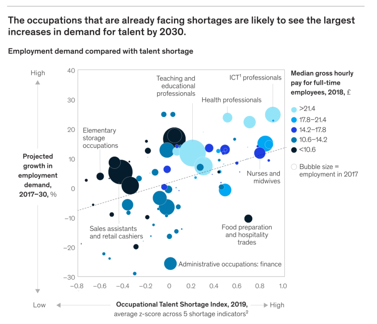 Chosen excerpts by Job Market Monitor. Read the whole story at Tackling shortages in the UK workforce by rethinking skills and the future of work | McKinsey
