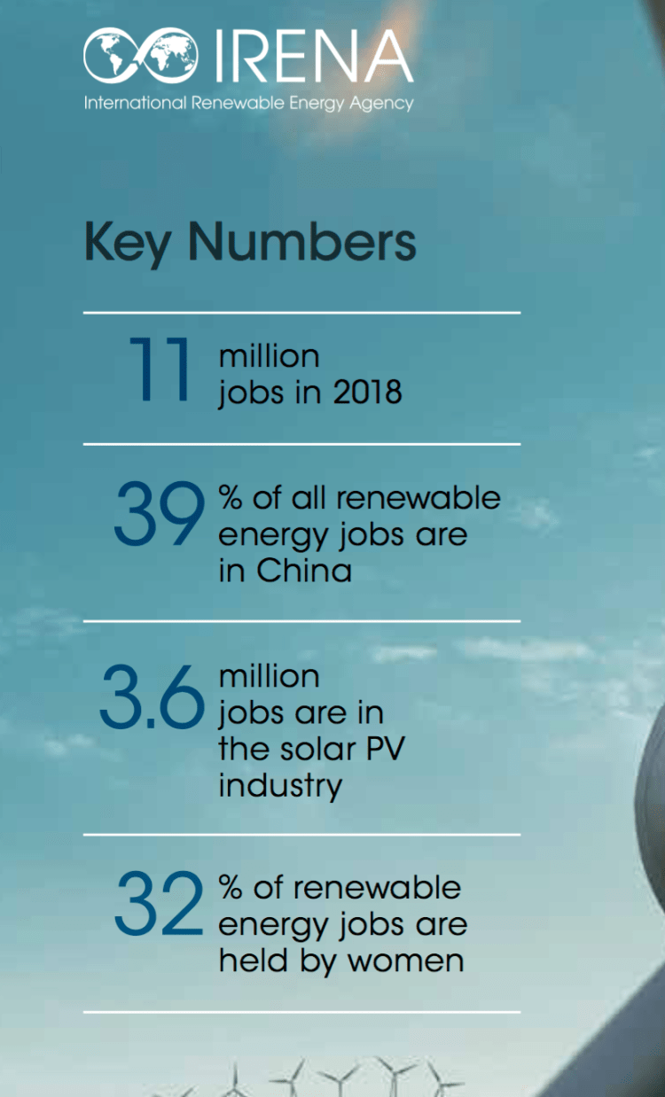 Chosen excerpts by Job Market Monitor. Read the whole story at Renewable energy and jobs: annual review 2019