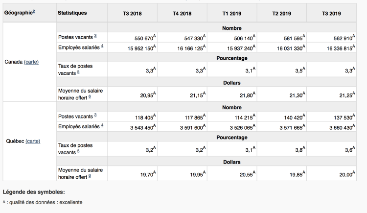 Extraits choisis par le Moniteur de l’emploi. Lire la suite @ Le Quotidien — Postes vacants, troisième trimestre de 2019