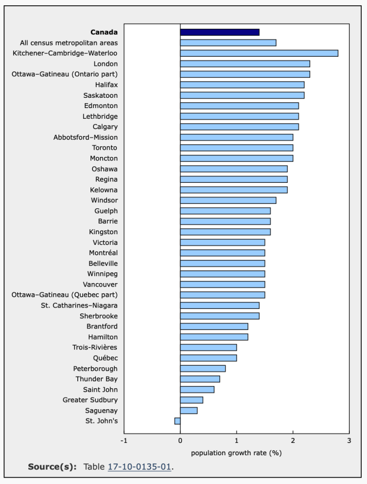 Chosen excerpts by Job Market Monitor. Read the whole story @ The Daily — Canada’s population estimates: Subprovincial areas, July 1, 2019