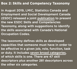 Several gaps remain in the LMI system when it comes to providing students with such information. These include a better and deeper understanding of the relationships between jobs and skills and, ultimately, better information about training and education pathways available by skills in Canada. LMIC is collaborating with its partners to bridge these gaps.