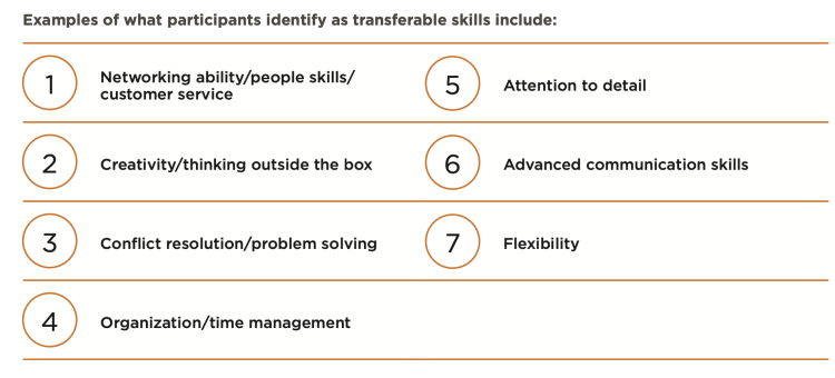 tasks effectively and efficiently. They are mainly interested in learning about transferable skills. They were also curious to learn about how skills will evolve or become obsolete in the future. In terms of LMI, their highest priority was to have information about skill requirements organized according to potential career pathways (i.e., within an industry or occupation).