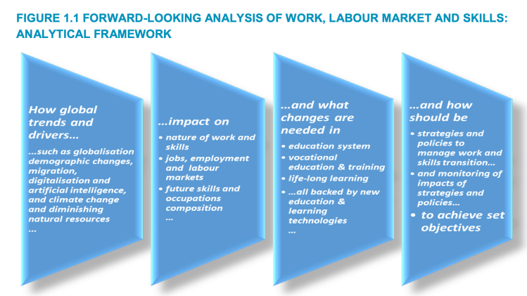 Chapter 1 develops an analytical framework for the study and investigates the context and the current and foreseeable global trends in economies, labour markets and skills. Globalisation is seen as a common denominator for many other global trends, with effects on the environment, culture, political systems, economic development and prosperity, and on human physical well-being in societies worldwide. The impacts of specific global trends vary by geographical, regional and socioeconomic contexts. Among future drivers impacting work and skills are digitalisation, automation and robotics, especially in routine occupations, although uncertainties about the magnitude of the impacts remain. Changes in work and skills culture require changes in human attitudes and behaviour.
