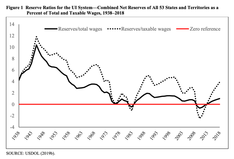 Chosen excerpts by Job Market Monitor. Read the whole story @ “State Unemployment Insurance Reserves Are Not Adequate” by Christopher J. O’Leary and Kenneth J. Kline