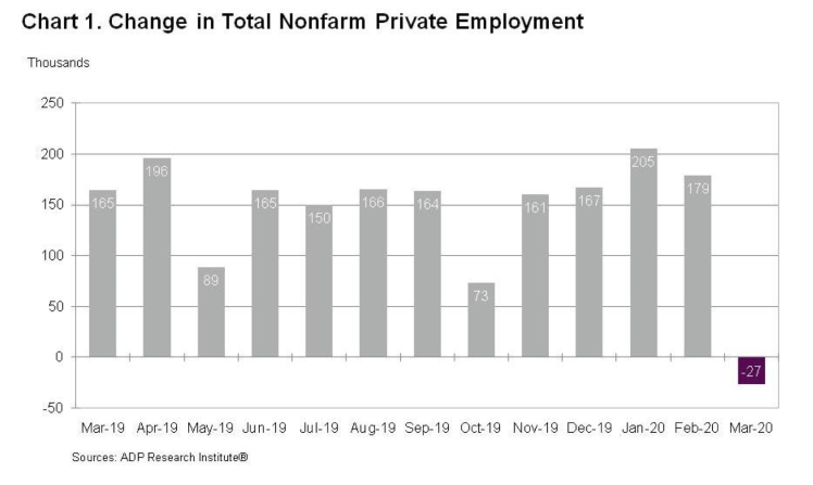 ADP National Employment Report: Private Sector Employment Decreased by 27,000 Jobs in March; the March NER Utilizes Data Through March 12 and Does Not Reflect the Full Impact of COVID-19 on the Overall Employment Situation