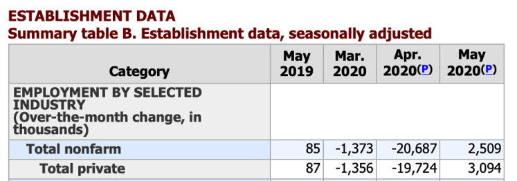 Total nonfarm payroll employment rose by 2.5 million in May, and the unemployment rate declined to 13.3 percent, the U.S. Bureau of Labor Statistics reported today. These improvements in the labor market reflected a limited resumption of economic activity that had been curtailed in March and April due to the coronavirus (COVID-19) pandemic and efforts to contain it. In May, employment rose sharply in leisure and hospitality, construction, education and health services, and retail trade. By contrast, employment in government continued to decline sharply.