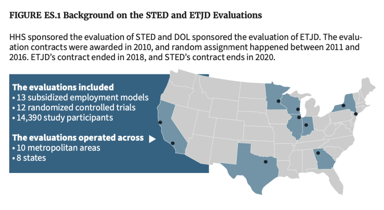 The 13 subsidized employment programs evaluated as part of the STED and ETJD projects intended to help reconnect participants to work, or in some cases education or training, in order to improve their long-term economic prospects. MDRC conducted random assignment evaluations of these programs to determine whether they achieved their goals and improved participants’ outcomes, and this report synthesizes findings across the STED and ETJD evaluations.
