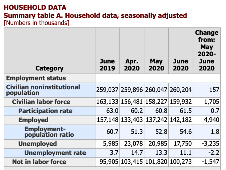Coronavirus (COVID-19) Impact on June 2020 Establishment and Household Survey Data