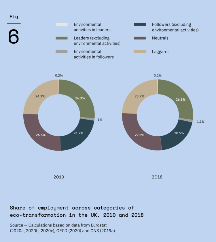 This report analyses the scale of the challenge and considers how sectors can adapt to avoid unemployment through the transition and ensure people are reskilled to do a ‘green job’. By analysing 10 datasets (including Office of National Statistics, Organisation for Economic Co-operation and Development and Eurostat), this report includes an ‘Eco-Transformation of Industries Matrix’. This brand new taxonomy classifies industries as ‘leaders’, ‘neutrals’, ‘followers’ or ‘laggards’ based on: how high (or low) their carbon emissions are, and how high (or low) they are engaged in environmental activities.