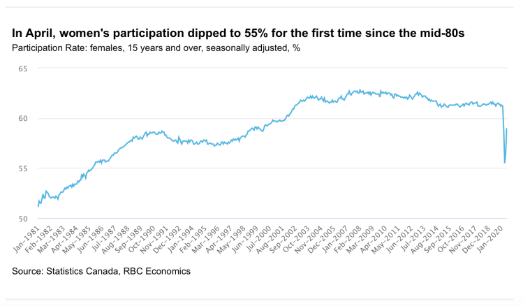 - The pandemic has pushed women’s participation in the labour force down to its lowest level in three decades, with 1.5 million women losing their jobs in the first two months of the recession.