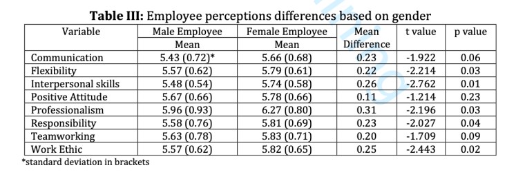 Practical Implications: This study has both theoretical and practical implications. It adds to the literature in human resources appraisal process by identifying soft skills perceived differently by employees and employers. It also highlights the reasons for that gap and makes suggestions for the enhancement of required skills.