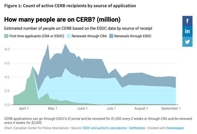 - 2.7 million (or 74%) of CERB recipients will be worse off after CERB ends: