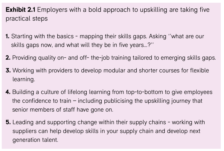 Based on the findings outlined above, the CBI has set out a package of measures, that we believe the government needs to adopt as a first step towards increasing investment in training by businesses, government, and individuals. They include: