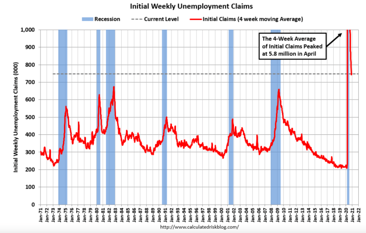 Source: Calculated Risk: Weekly Initial Unemployment Claims increased to 778,000