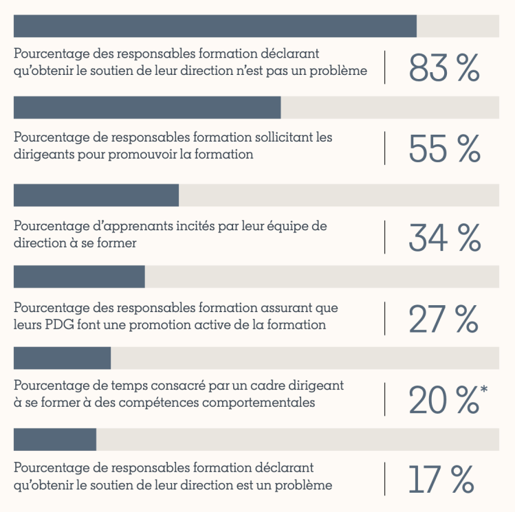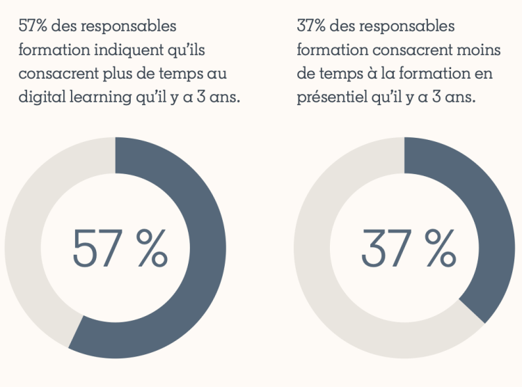 Les budgets consacrés à la formation devraient continuer de croître et aller de plus en plus vers le digital learning au détriment des cours en présentiel. Quant au soutien des dirigeants envers les programmes de formation, il continue de se renforcer.