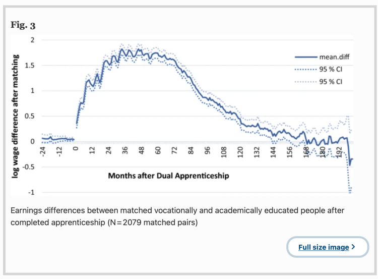 Chosen excerpts by Job Market Monitor. Read the whole story @ Does tertiary vocational education beat academic education? A matching analysis of young men’s earnings | Empirical Research in Vocational Education and Training | Full Text