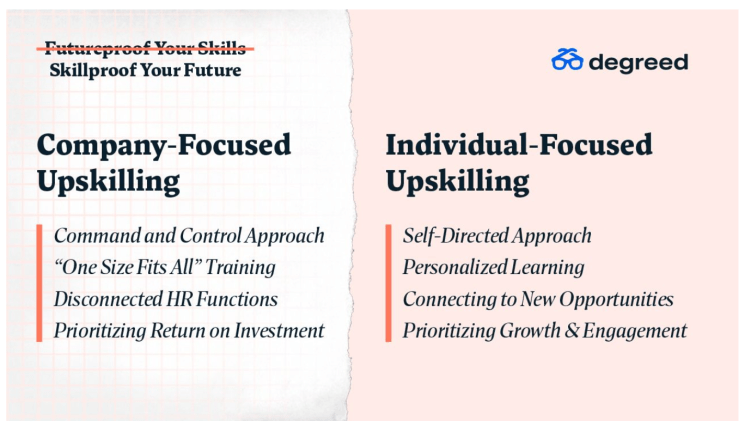 If the benefits of upskilling are so obvious, why aren’t most companies making progress? The problem is the paradigm. For too long, upskilling has focused on the company, not the individual.