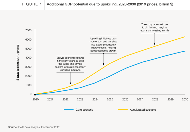 1. Wide-scale investment in upskilling has the potential to boost GDP by $6.5 trillion by 2030 (Figure 1).
