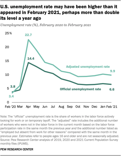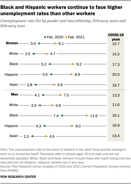 Chosen excerpts by Job Market Monitor. Read the whole story @ A year into COVID-19, U.S. labor market recovery is far from complete | Pew Research Center