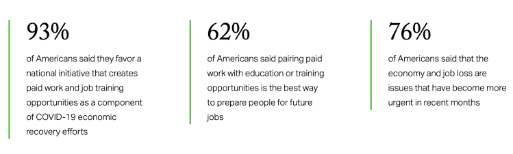 Gallup, in partnership with Carnegie Corporation of New York, developed the Back to Work: Listening to Americans survey to understand the issues Americans face today and reveal that even in these deeply divided times, an overwhelming majority of Americans can find common ground on priorities for COVID-19 recovery. The study explores important issues such as: