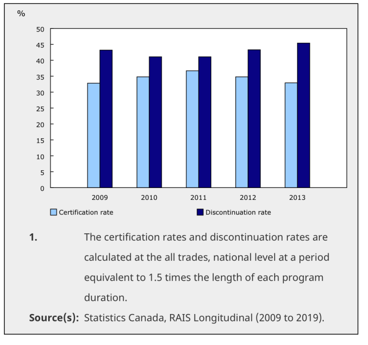 Chart 1: Rates of certification and discontinuation for all trades at 1.5 times the program duration in Canada