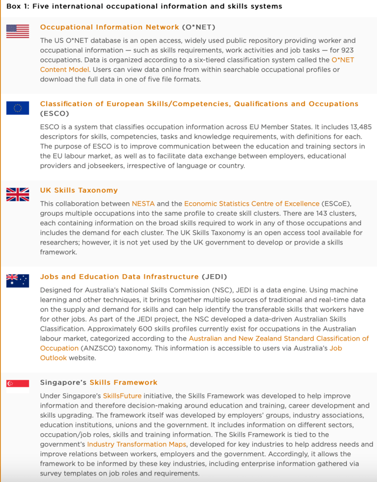 - The development of this system draws on best practices from the different approaches assessed in previous LMI Insight Reports (e.g., job analyst approach, web scraping) and the lessons from various international examples.